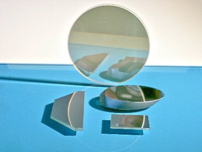 Optische Spiegel sind Bauteile, die zur Reflexion von Licht, aber auch zur Selektion von bestimmten Strahlungsanteilen dienen. Neben den reinen Metallspiegeln (z.B. bei CO2-Laser) kommen im optischen Gerätebau üblicherweise Glasspiegel, die mit reflektierenden Spiegelschichten versehen sind, zur Anwendung. Man unterscheidet bei den optischen Spiegel unabhängig von Form und Größe vom Aufbau her zwischen Vorderflächenspiegel, Rückflächenspiegel und Teilerspiegel (Strahlteiler mit einem definierten Teilungsverhältnis zwischen dem transmittierten und dem reflektierten Strahlungsanteil). Optische Spiegel können eben (plan), aber auch konvex oder konkav gewölbt sein. Gewölbte Spiegel sind abbildende optische Komponenten und finden daher besonders in Spiegelteleskopen und in der Beleuchtungsoptik Anwendung. Die Beschichtung der optischen Spiegel kann je nach Anforderung metallisch oder dielektrisch ausgeführt sein. Rückflächenspiegel sind fast ausschliesslich nur metallisch beschichtet. Alle die hier genannten Spiegel können bei uns nach Kundenspezifikation kostengünstig hergestellt werden.